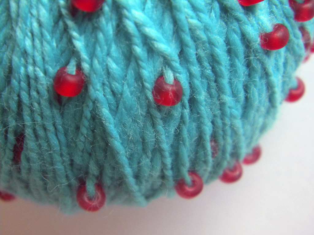 Jo, lite mer prickigt garn har jag gjort. Stickar i det gör jag också, en mössa är på gång och en halsvärmare är klar (se bilden nedan). Prickarna (eller pärlorna om man vill det) syns ju mer tydligt på enfärgad ull än på flerfärgad som på bilden nedan.